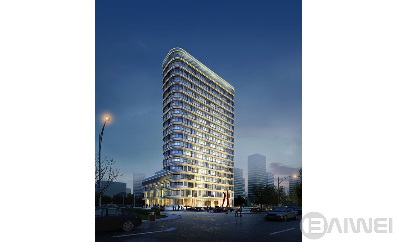 建筑以辦公為主,局部商業(yè)。裙樓以矩形為主,中間巧妙配以中庭,在避免了視線干擾的同時(shí),為公共活動(dòng)區(qū)提供了良好的視覺焦點(diǎn)和室外活動(dòng)場(chǎng)所,使建筑內(nèi)部空間品質(zhì)大加改善。并取得了中央綠地景觀與城市綠化帶景觀的協(xié)調(diào),形成一體化的具有生長性的景觀脈絡(luò)。主樓以“L”布局分布,以提升建筑物的活躍度,體現(xiàn)總部大廈辦公建筑的鮮明個(gè)性,使建筑物的整體形象更加簡(jiǎn)潔明快,賦予建筑強(qiáng)烈的時(shí)代特征。立面采用充滿現(xiàn)代意味的韻律感來加強(qiáng)建筑節(jié)奏性,細(xì)節(jié)上極具特征,整體上又連接成片,渾然一體,簡(jiǎn)約純凈。同時(shí)立面設(shè)計(jì)上注重實(shí)體與虛透空間的比例關(guān)系,活潑的灰白色石材墻面呈橫向延伸,加之于豎向窗戶的肌理,由橫向線條隱含表達(dá)著縱向線條的變化,賦予了立面以活潑元素,注重虛實(shí)相比與體塊交差、變化,使建筑體量變化多姿相得益彰。