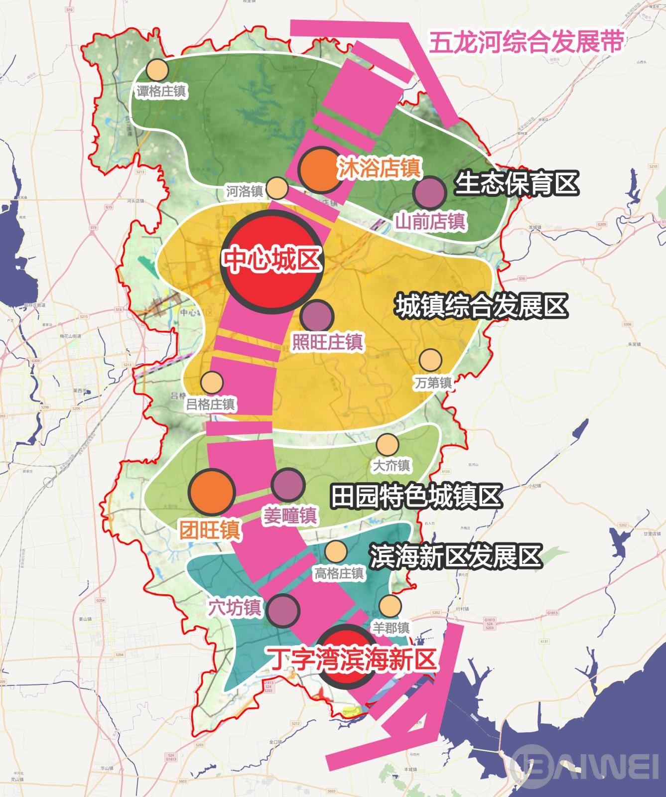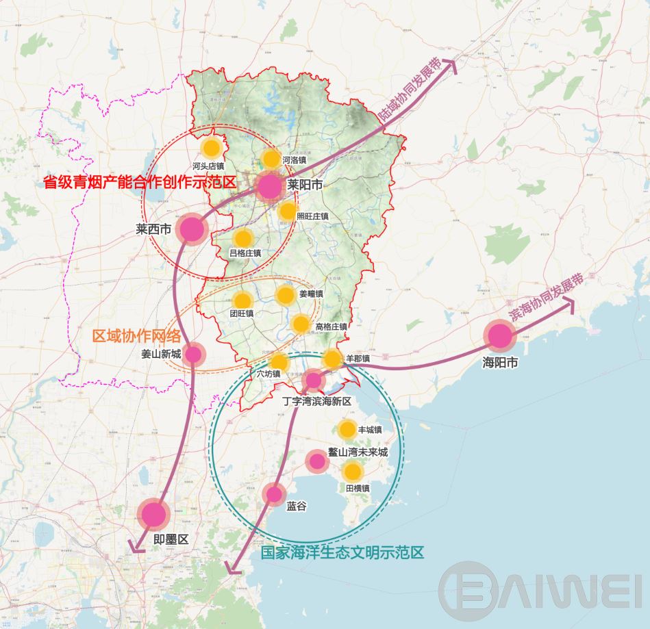 空間結(jié)構(gòu):積極推動(dòng)“雙萊區(qū)域一體化發(fā)展”并加快構(gòu)建萊陽(yáng)“一帶兩區(qū)、四大板塊”的市域城鎮(zhèn)空間結(jié)構(gòu)。